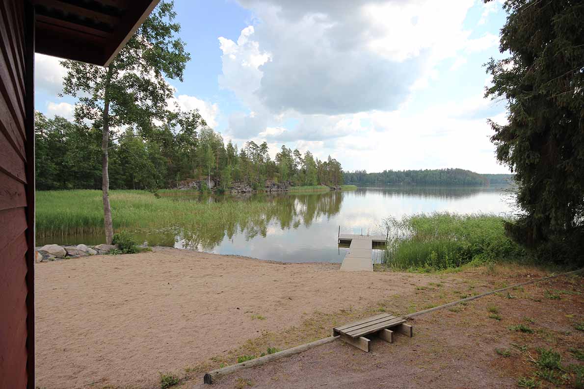 Rannalta löytyy huussi ja pukukopit, tuossa kuvassa oikealla.