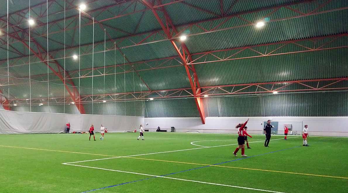 Laaksolahden jalkapallohalli on mukavan lämmin ja hyvin valaistu halli. Kenttä on kaiketi niukin naukin täysimittainen, mutta esim. pienen kentän pelit ovat täällä tosi pieniä. Kentän saa kätevästi jaettua treenejä varten kahteen osaan ja pieneksi lämmittelyalueeksi. Hallista on tulossa oma kuvasarjansa lähiaikoina.