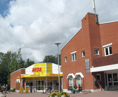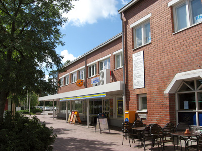 Ostoskeskuksen vieressä on muutamia 70-luvulla rakennettuja kerrostaloja.