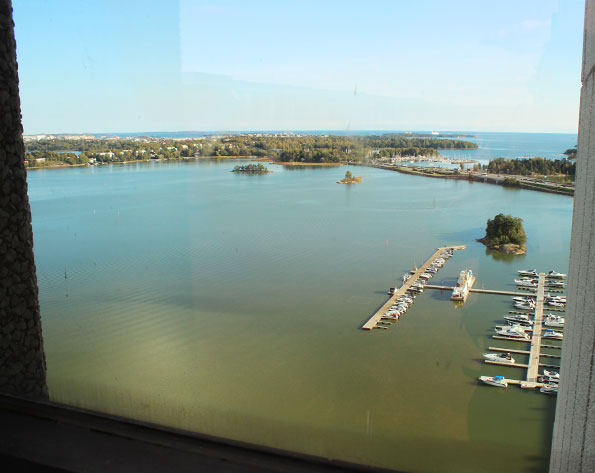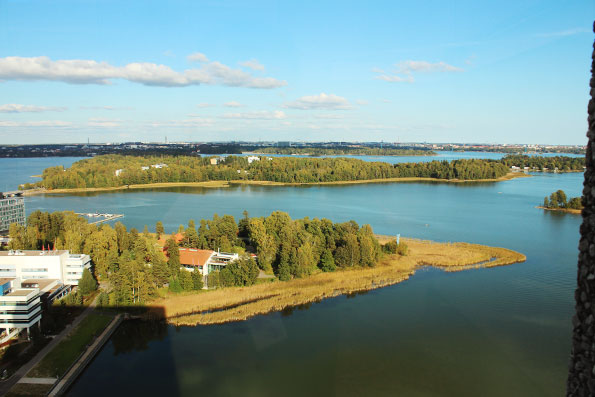 Yhdellä pikkuparvekkeella pääsee kuvaamaan ilman laseja. Ja heti löytyy maisemaa. Kailaniemeä ja saaristoa.