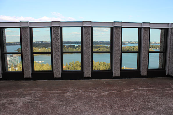 Kaiteet ovat noin kolmemetriset. Turvallisuusmielessä hyvä, mutta valokuvauksen kannalta paha. Siis kun aurinko heijastui lasiin. Mutta mitä sitä valittamaan kun syyskuussa pääsee kameran kanssa liikkeelle tämänkaltaisessa säässä.