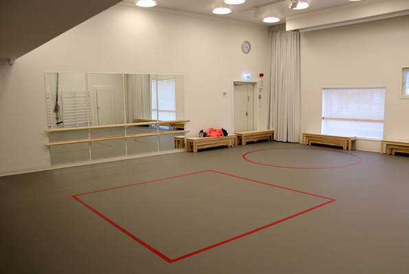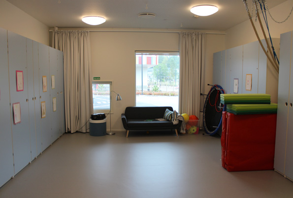Liikuntasali. Tämä on myös "yleisessä" iltakäytössä. Painiityn päiväkoti hoitaakin selvästi myös kyläkeskuksen roolia.