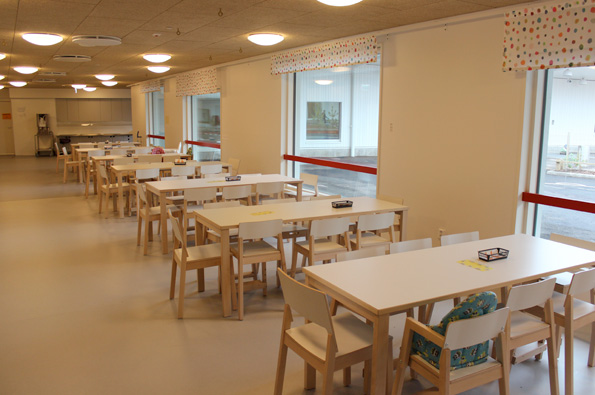 Uutta on myös ruokasali. Isoimmat lapset syövät hieman "kouluhenkisesti" ruokasalissa.