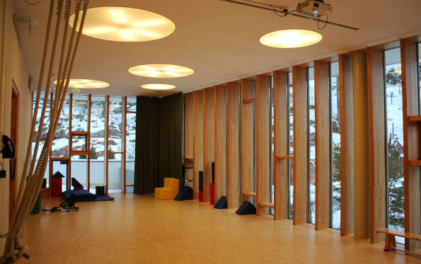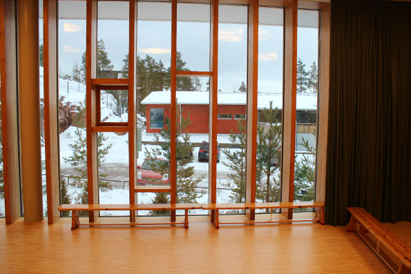 Aloitetaan liikuntasalista. Löytyy rakennuksen eteläpäästä.